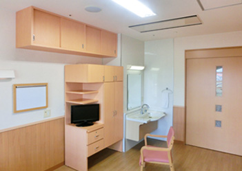 居室2階には個室が36室あり、入所者様とご家族様がゆっくりとくつろいでいただける空間になっています。また、3階に11室ある4人部屋は、障子風の間仕切りで落ち着いていただける和の雰囲気のお部屋です。