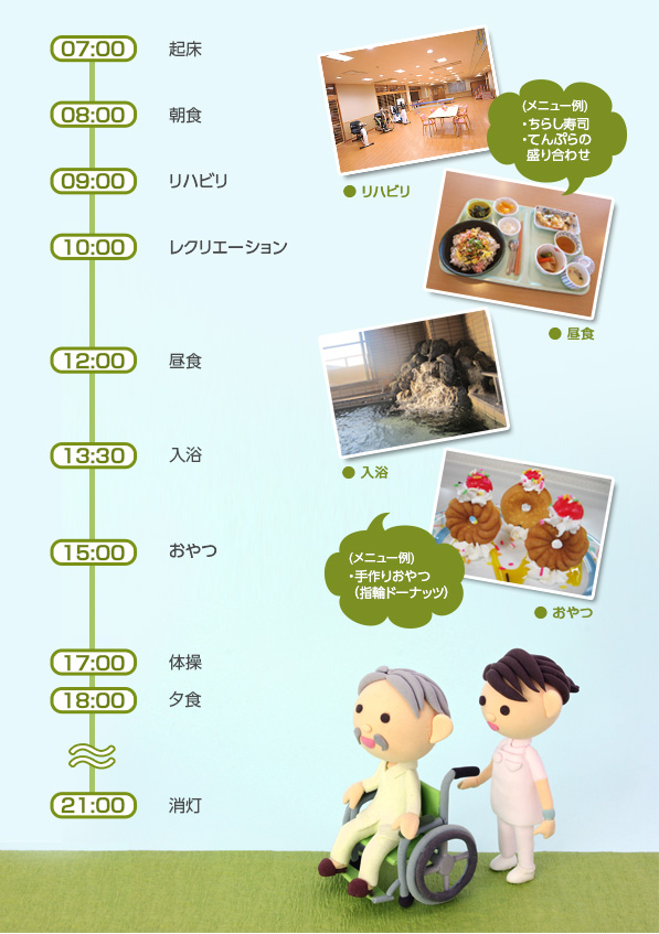 看護、介護のケアを行い、理学療法士、作業療法士によるリ